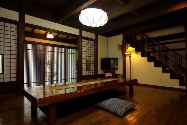 和の趣を感じる古民家風の離れは、寝室として使用できる部屋が3室に、掘り炬燵の居間を備えた、広々空間。